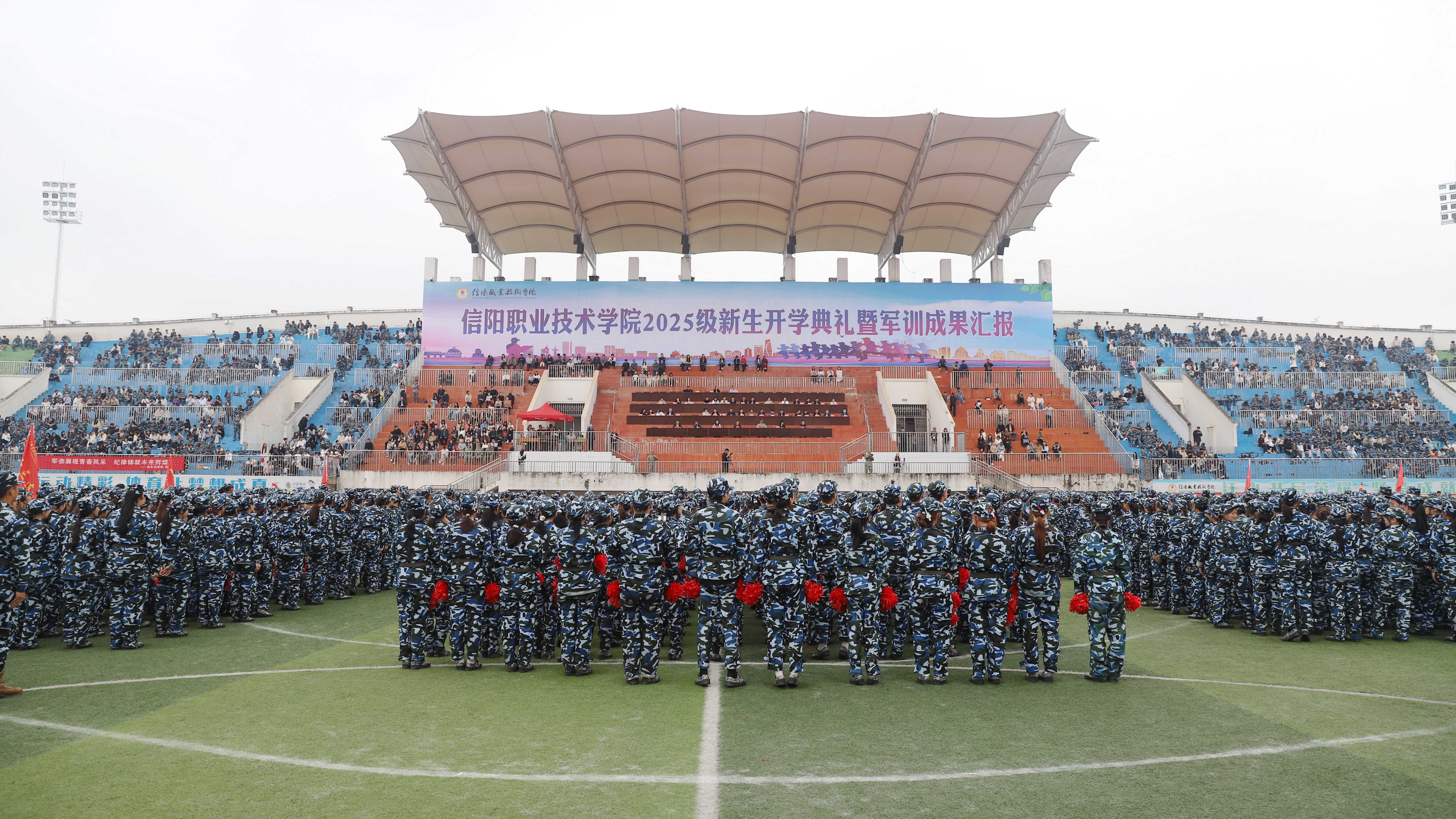 9月28日上午,我校2025级新生开学典礼暨军训汇演在西体育场隆重举行。平桥区人民武装部政委甄旭东、学校校长李森、学校领导班子成员和二级学院、处室负责人出席活动并在主席台就座。教师、学生代表以及2025级全体新生参加活动。典礼由副校长黄新主持。