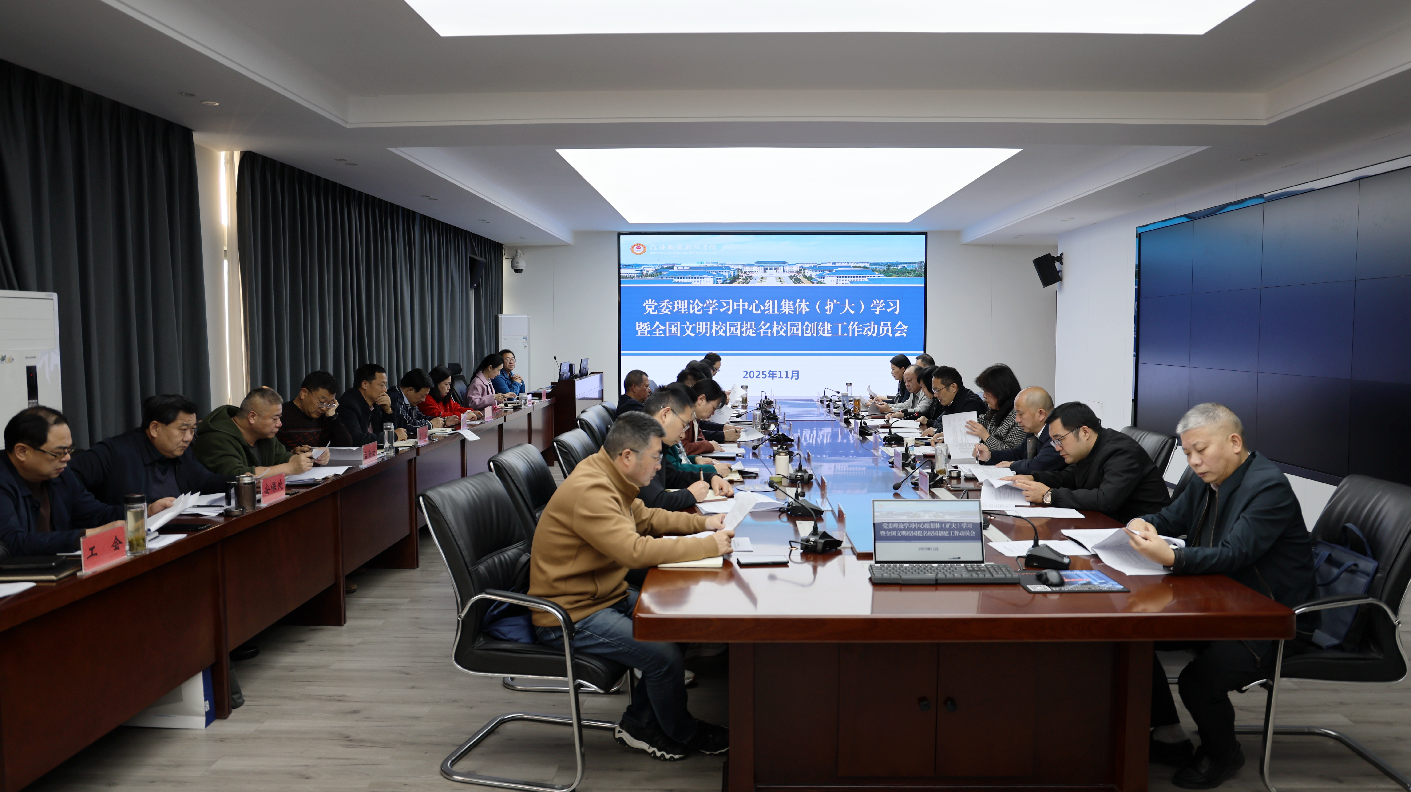 11月13日,我校召开党委理论学习中心组集体(扩大)学习暨全国文明校园提名校园创建工作动员会,全面部署创建工作。学校校长李森主持并讲话,党委中心组成员及各处室、各教学院部负责同志参加会议。