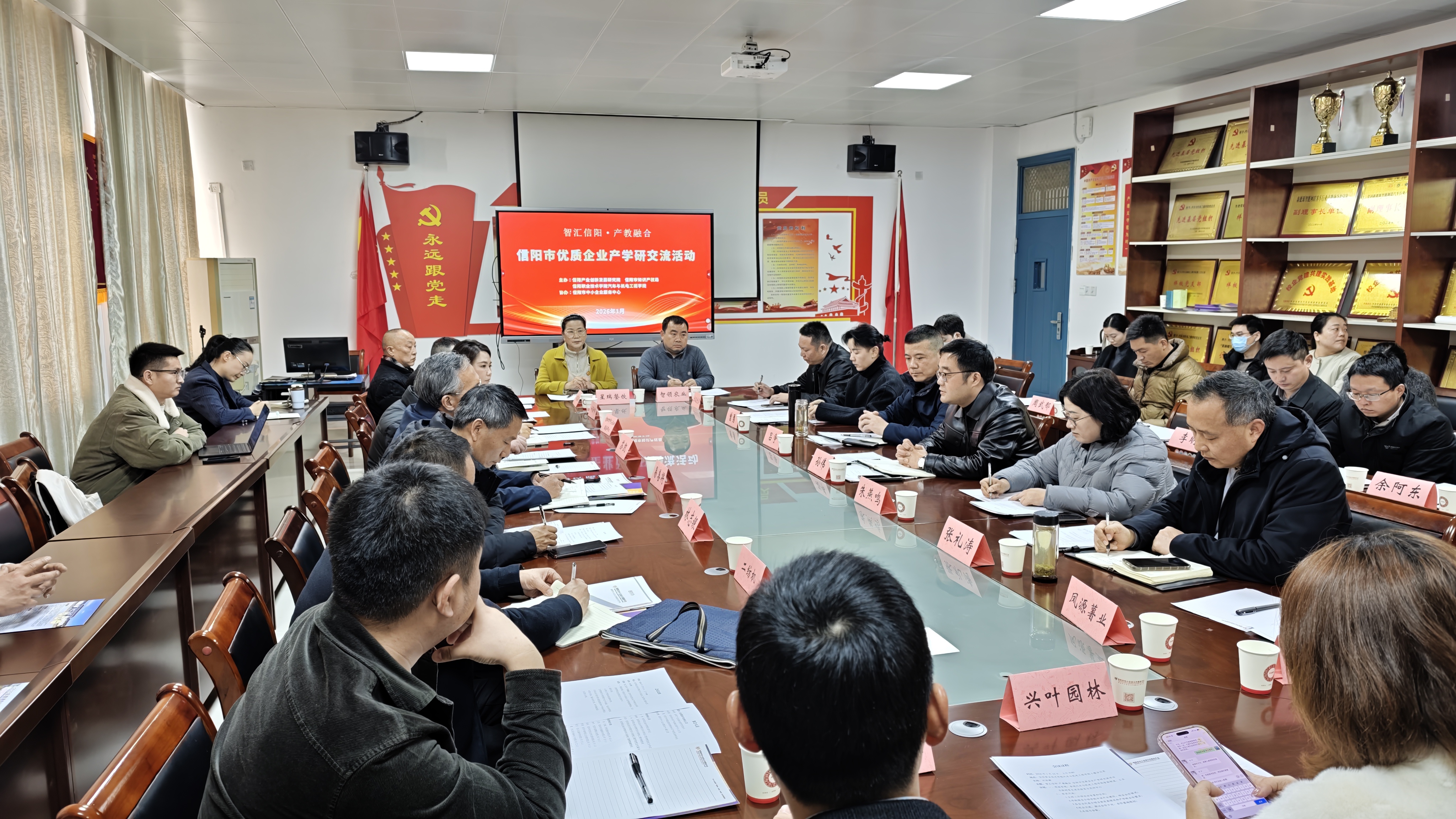 为深化产教融合、精准对接企业需求,1月16日,汽车与机电工程学院联合信阳市产业创新发展研究院、信阳市知识产权局、信阳市中小企业服务中心共同举办“智汇信阳·产教融合——信阳市优质企业产学研交流活动”。活动邀请纺织机械配件、光学镜片、电子专用材料、智慧农业、绿色食品、园林种植等领域的13家优质企业代表走进校园,通过实地参访与座谈交流,推动校企合作走深走实。