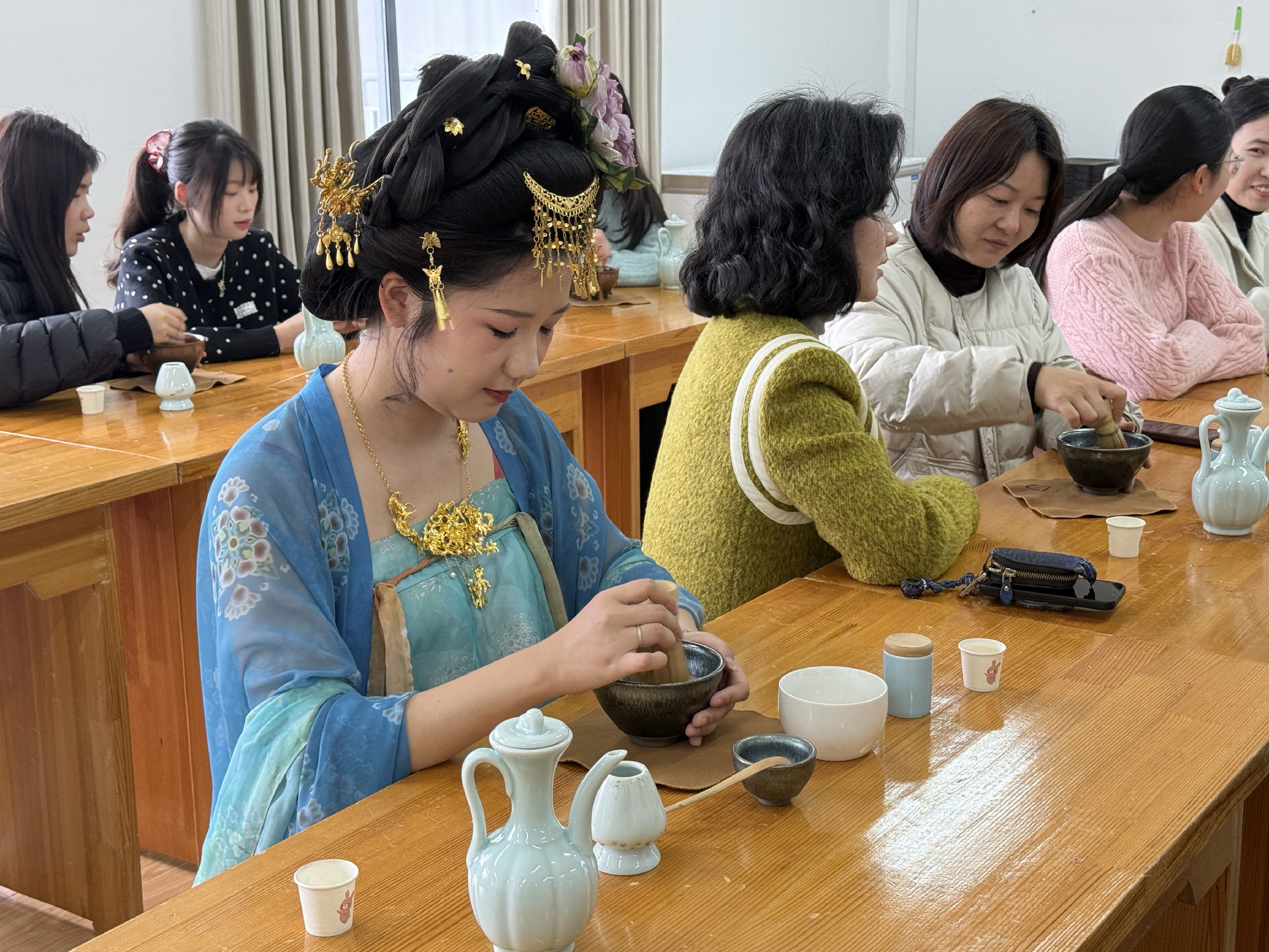 文化浸润传承非遗。围绕传统文化传承,各部门开展形式多样的浸润活动。医学院召开“寻古韵 传非遗”主题班会,让学生沉浸式感受传统文化魅力;信息学院举办AI 辅助非遗创作大赛,推动传统文化创造性转化、创新性发展;旅游学院、中医药学院、语言与传媒学院分别开展宋代点茶、古风手工制作、社区文化服务等活动,让师生在实践中体悟匠心、传承文脉,厚植文化自信。